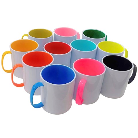 Caneca de plastico colorida, resinada e resistente para trabalhos com sublimação. Produto ideal para datas comemorativas ou decoração com personagens!